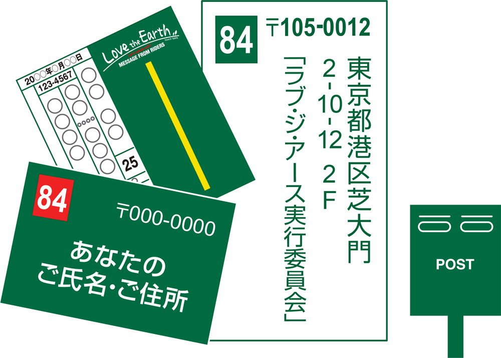 宣言書+返信封筒を別の封筒に入れ、「Love the Earth実行委員会」まで郵送
